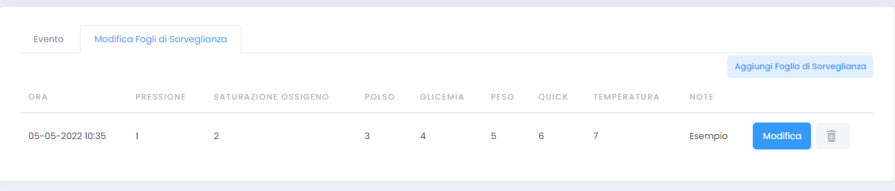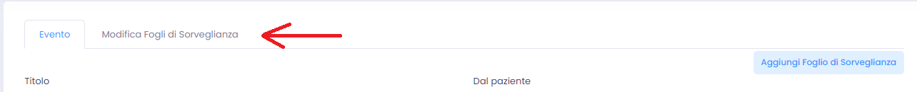 In un evento è possibile visualizzare e modificare i fogli di sorveglianza che ad esso sono stati aggiunti. Per fare questo è sufficiente selezionare in alto ‘Modifica Fogli di Sorveglianza’: